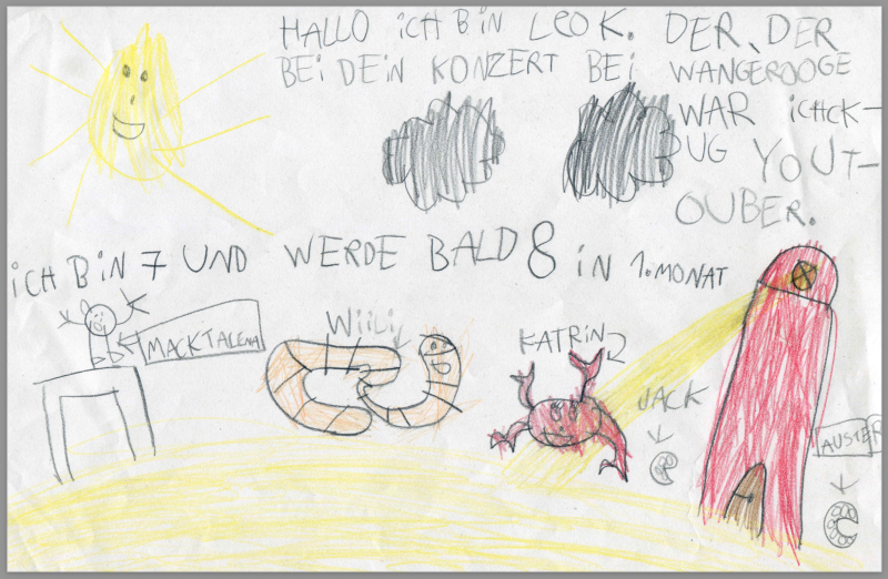 Nach dem Auftritt auf Wangerooge brachte mir Sophie ein selbst gemaltes Bild zur Bühne. Ich habe mich riesig darüber gefreut, vielen Dank Sophie!
