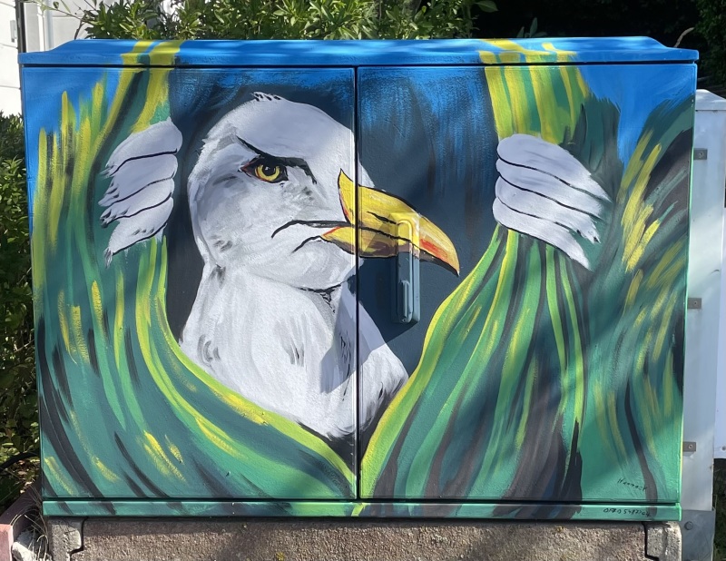Auf Wangerooge gibt es einen Kunstverein, dessen Mitglieder verschönern Stromkästen. Hier zum Beispiel ein sehr gelungenes Porträt von Magdalena Möwe. ... ffff ... ffff ... ffffantastisch!