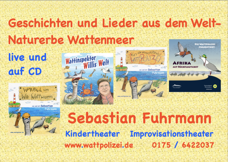 Es gibt vier CDs von der Wattpolizei, hier findet Ihr Infos und Hörproben dazu.